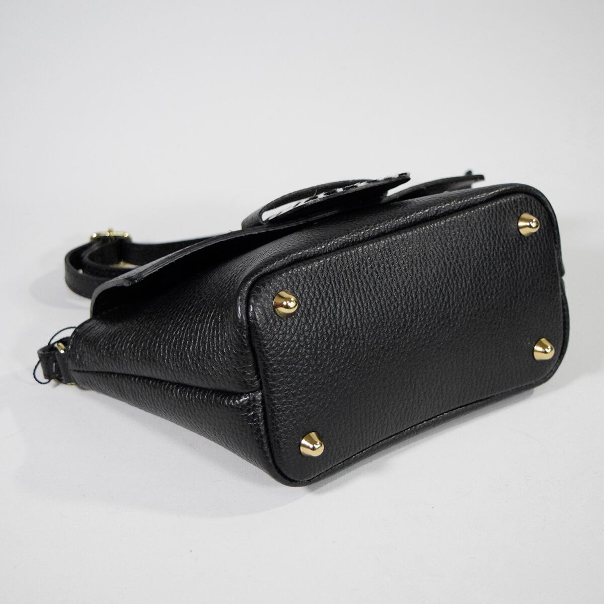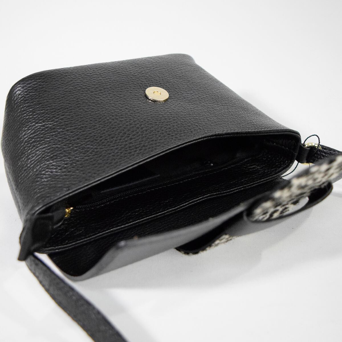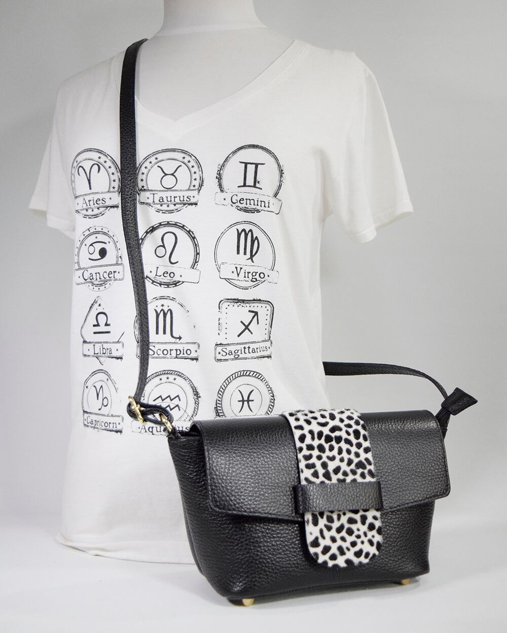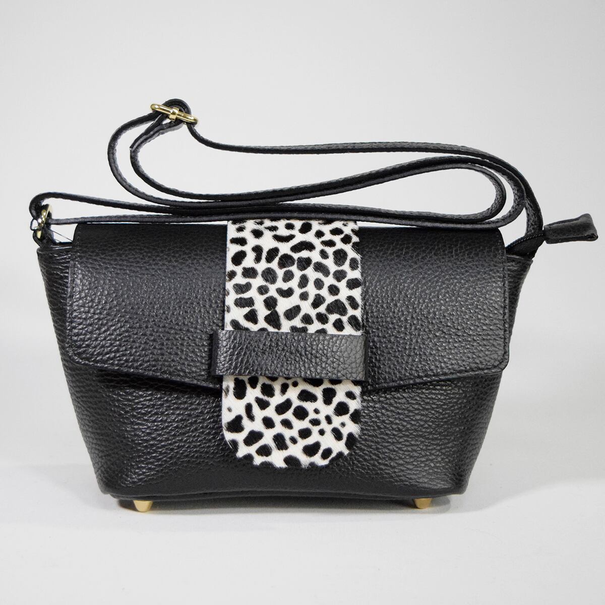 M ROSE 牛革シュリンク牛毛ダルメシアンプリントフラップショルダーバッグ ブラック