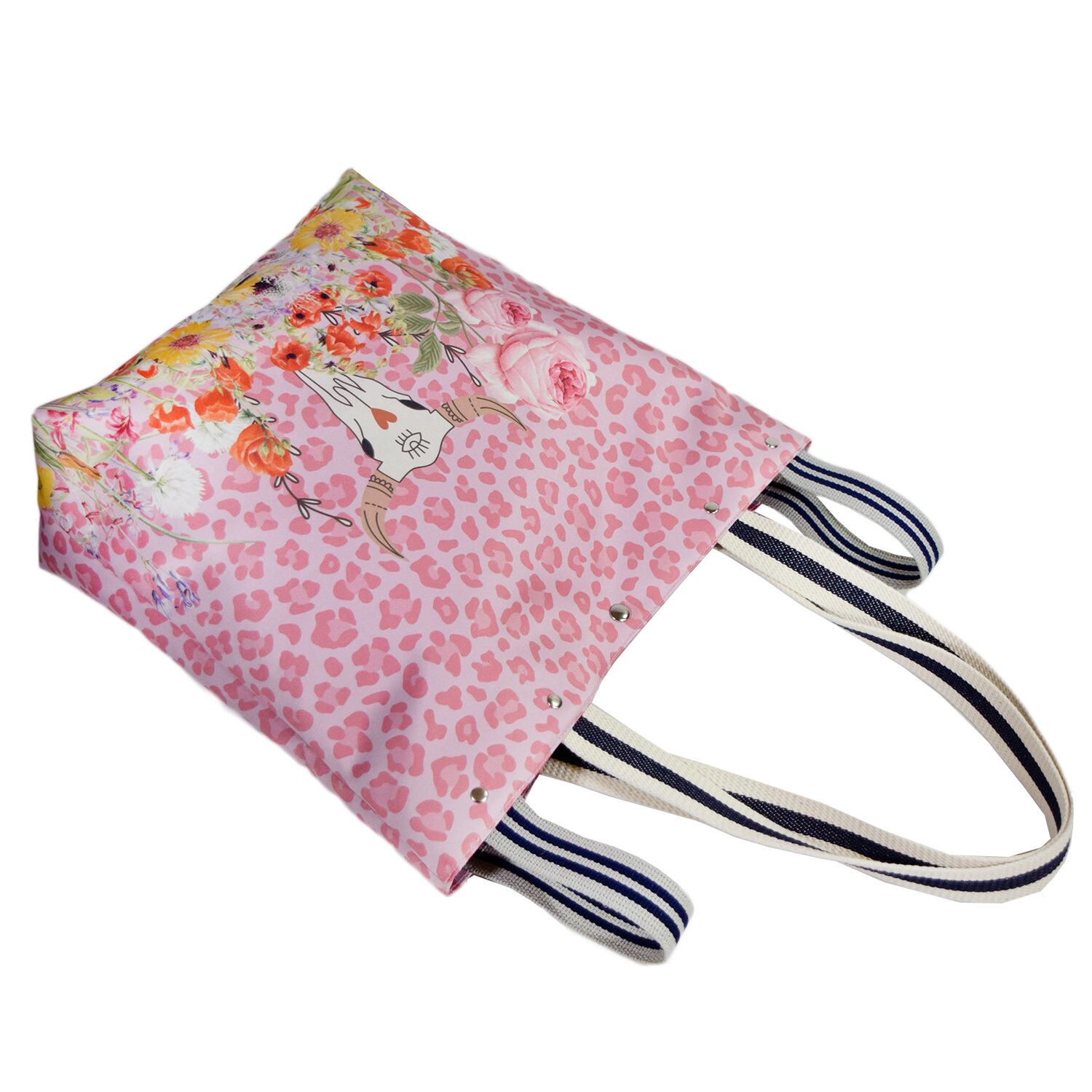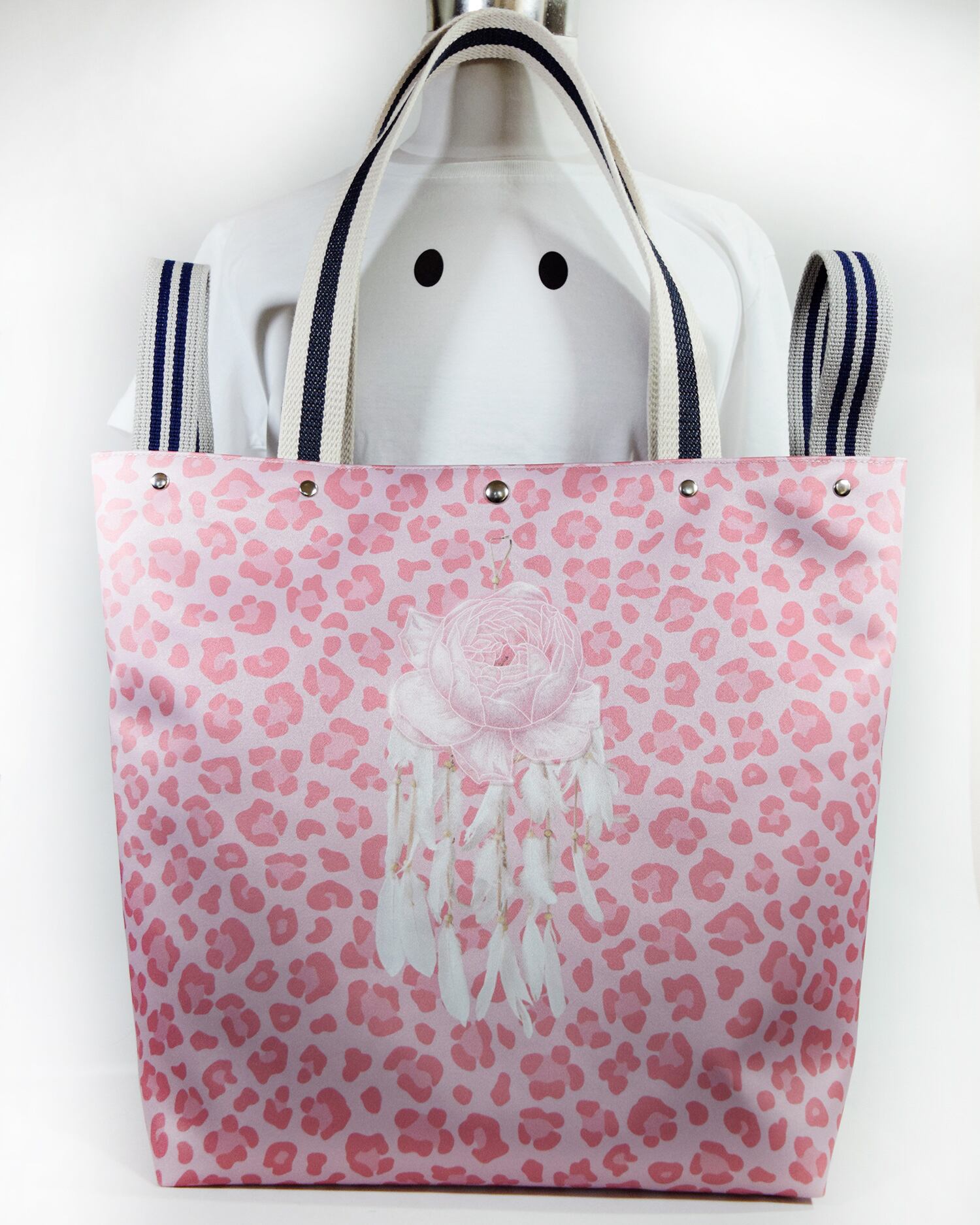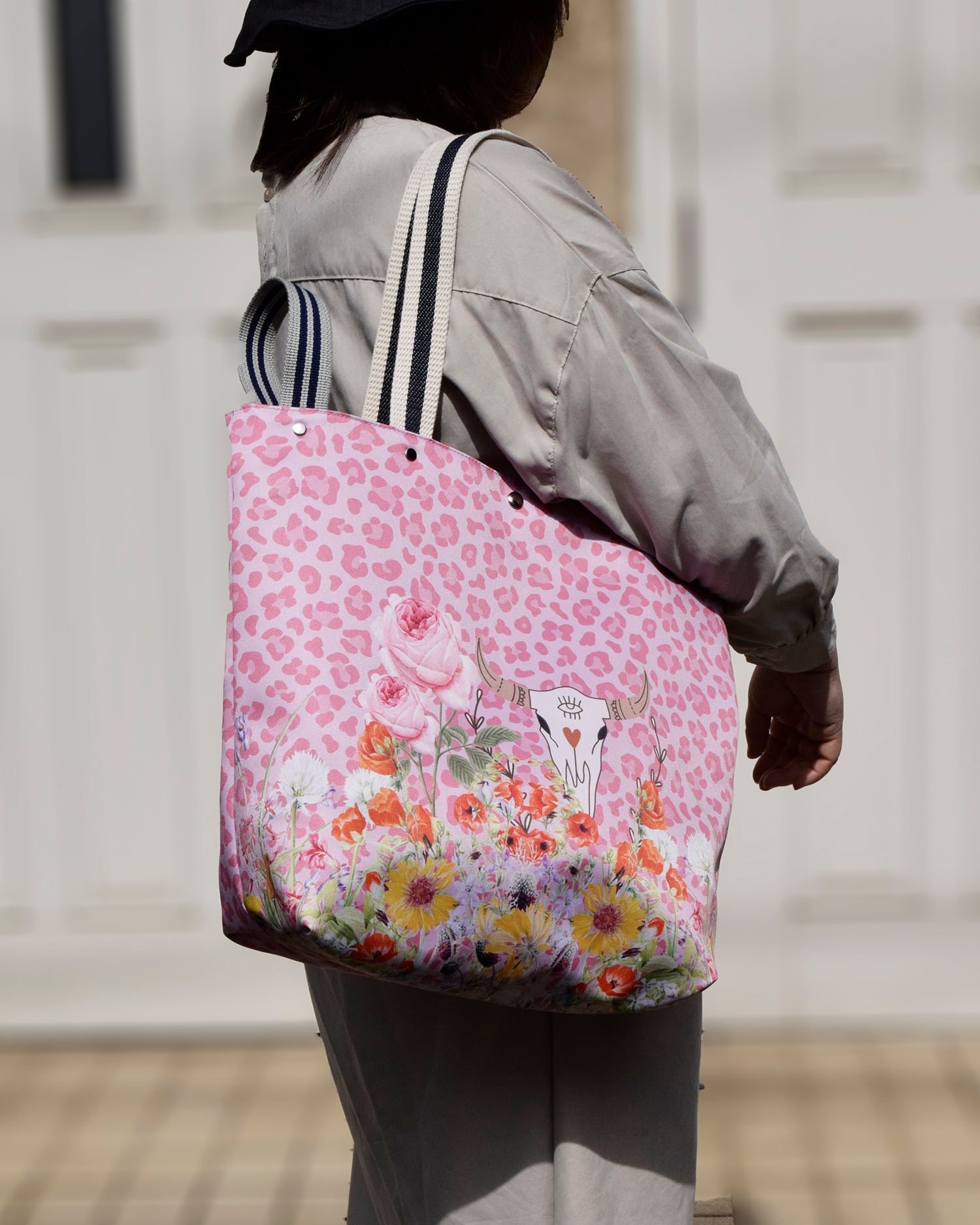 ティピィカレン ピンクフラワーダブルハンドルビッグトートバッグ