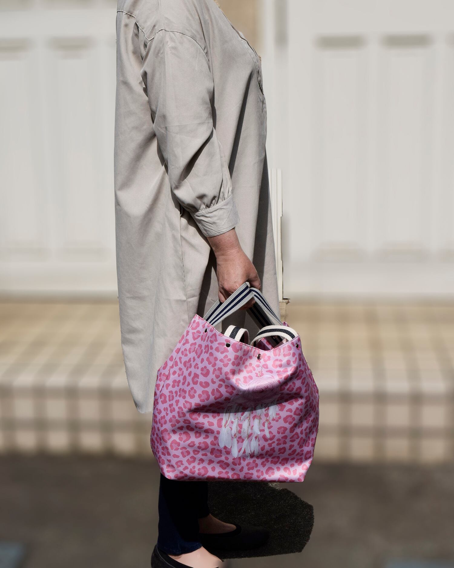 ティピィカレン ダブルハンドルのビッグトートバッグ。ピンクのコットン裏地をつけてバッグの形を安定させより高級感をアップさせました。