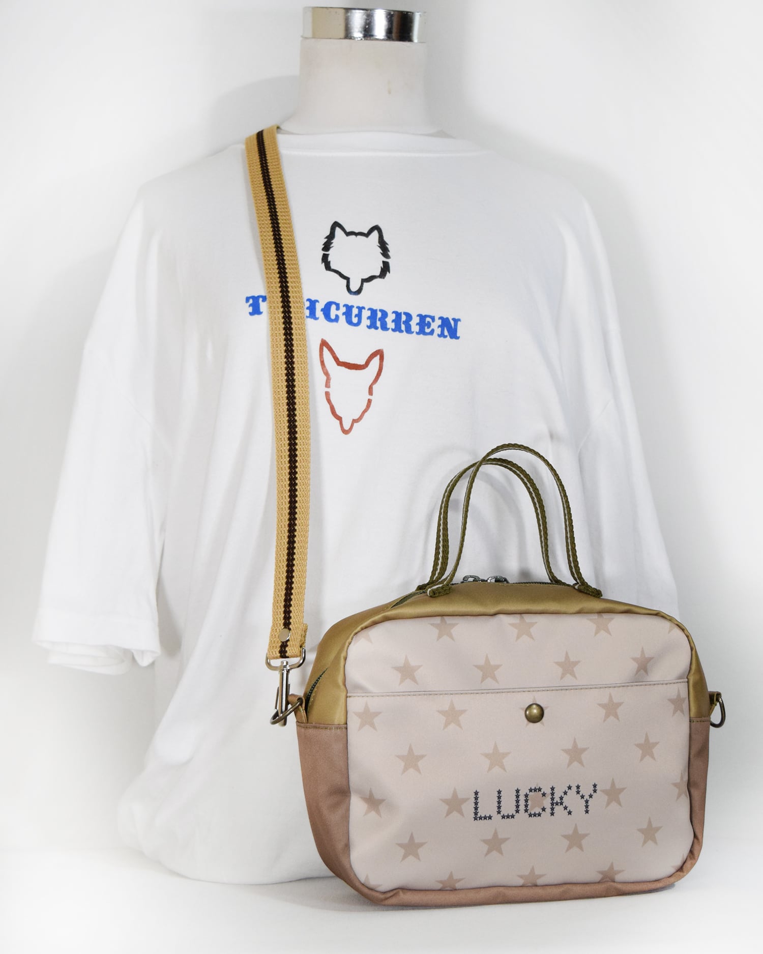 LUCKYロゴとドッグモチーフを施し、ポケット裏にもTIPICURRENロゴやドッグモチーフを入れてあります。見えないところに幸せワードを入れて楽しいさいっぱいのバッグです。